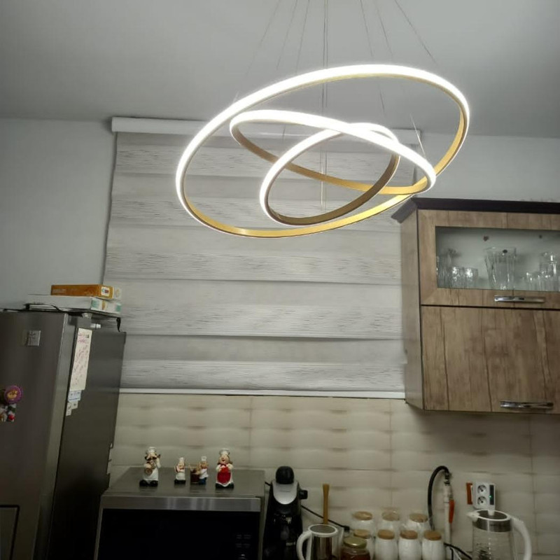 لوستر مدرن نور از بیرون ، در ابعاد 70x50x35 میباشد ، که با بدنه طلایی ارائه شده و در سه نوع رنگ نور افتابی ،مهتابی و روشن شدن هردو همزمان( چند رنگ ) ارائه میشود و قابل انتخاب میباشد. ارتفاع لوستر از 20 سانت تا 80 سانت قابل تغییر است، همچنین میتوانید چیدمان لوستر را از ، به طبقاتی ویا کهکشانی تغییر دهید . با ریموت و اپلیکیشن موبایل میتوانید نور لوستر را کم وزیاد، و خاموش و روشن ، و یا به حالت شب تغییر بدهید