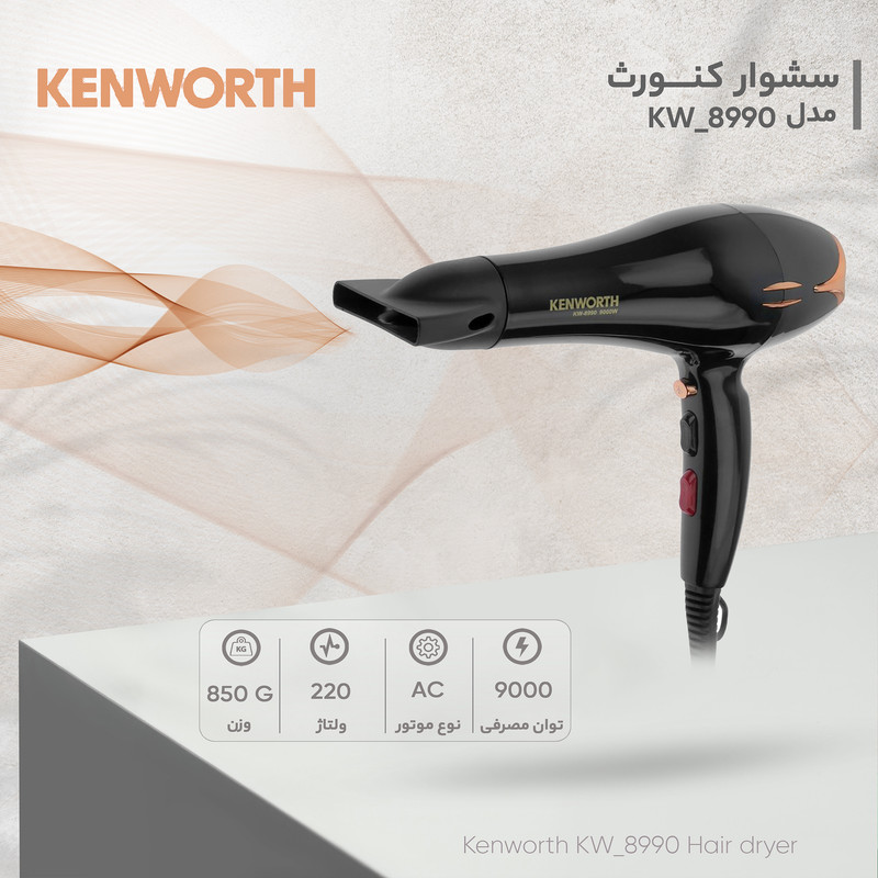 خرید اینترنتی سشوار کنورث مدل KW_8990 با رنگبندی مشکی به همراه مقایسه، بررسی مشخصات و لیست قیمت امروز در فروشگاه اینترنتی دیجیفای