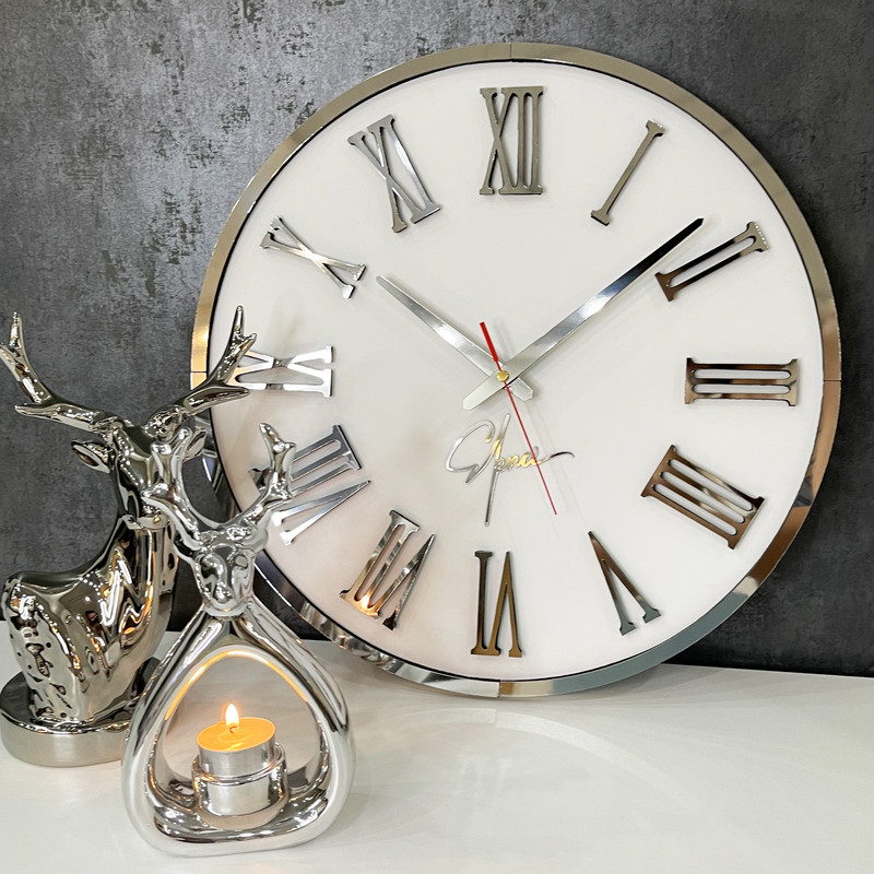کارولین از سری ساعتهای زمینه مات برند النسی است که طراحی آن نمره ی بالایی از مشتریان این برند گرفته است. النسی پس از طراحی و محبوبیت این مدل، آن را درچندین سایز و رنگ عرضه کرده، که محصول پیش رو قطر کوچک 40 سانتی این طرح است. این ابعاد برای نصب در اتاق خواب ، فضای کار محدود و یا قرار دادن روی شلف و کنسول بعنوان مکمل اکسسوری ها مناسب است. ساعت دیواری کارولین برخلاف سایر ساعت های موجود در بازار که نمایی تیره دارند، کاملا روشن و درخشان طراحی شده ازین رو برای خاص پسندان مناسب است. کارولین از بدنه چوبی با رنگ آمیزی سفید مات ساخته شده که پنل اعداد از جنس آینه های مولتی استایل روی آن قرار گرفته است. وجود اسپیسر های فومی زیر پنل اعداد و فریم ساعت، سایه زیبایی از اعداد روی صفحه ایجاد می کند که به زیبایی این محصول افزوده است. این ساعت دیواری قابلیت نصب روی کلیه سطوح صاف را داشته و موتور آن ساخت کمپانی معتبر یانگ تاون تایوان است. کارولین توسط برند النسی که در حوزه طراحی اکسسوری دکوراتیو تخصص دارد، طراحی و تولید شده است. نسخه جدید ساعت دیواری کارولین به همراه عقربه فلزی به رنگ اعداد و فریم ارسال می شود که نسبت به نسخه قبلی ، کیفیت آن بهبود یافته است.