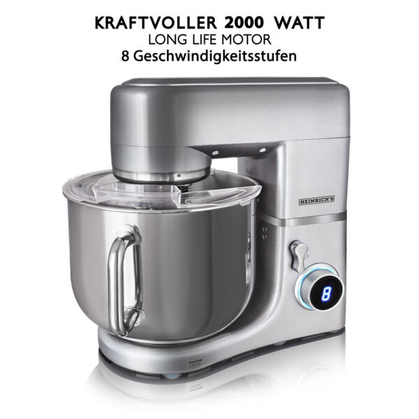 همزن 12 لیتر هنریچ Heinrichs HKM8120 از محصولات تولید شده توسط برند آلمانی هنریچ است. همزن هایی همچو مدل 8120 که از سیستم گیربکسی استفاده میکنند دارای قدرتی بسیار بالا تر و کارایی بهتر هستند. تمام قطعات استفاده شده در این همزن ها از طریق فروشگاه اینترنتی کالاموج قابل تهیه است. لذا حتی در صورت آسیب به قطعات و عدم امکان استفاده مجدد از آنها، لازم نیست نگران تهیه همزن جدید باشید. همه این قطعات قابل جایگذاری هستند. ویژگی ها و مشخصات این همزن را در مقاله فروشگاه بخوانید; دارای پایه ضدلغزش دارای 4 سری متفاوت تنظیمات سرعت: 8 سرعته دارای نمایشگر LED جنس کاسه: استیل ظرفیت کاسه: 12 لیتر جنس پره ها: استیل توان: 1800 وات با وجود حجم بالای موادغذایی که میتوانید داخل کاسه استیل این همزن بریزید، لازم است کفی و پایه ها به گونه ای طراحی شوند که همزن در هنگام کار تکون نخورد. چرا که با وجود قدرت بالای موتور دستگاه و فشار وارده به پره ها و کاسه، لغزش ها در ابتدا اجتناب ناپذیر به نظر میرسند. اما با وجود پایه های ضد لغزشی که در کف محصول قرار دارند، هیچ لغزشی متوجه دستگاه نخواهد بود. گستردگی کارایی همزن 12 لیتر هنریچ Heinrichs HKM8120 از سری های متفاوت و متنوع آن مشخص است. هر چهار سری قرار گرفته در پک دستگاه از جنس استیل رنگ ثابت ساخته شدند. این سری ها در برابر رطوبت و .. آسیبپذیر نبوده و سالها، عملکردی با کیفیت ارائه خواهند داد. سری های قرار گرفته بر روی محصول عبارتند از: پره های خمیر زن پره تخت پره مفتولی موتور گیربکسی قرار داده شده در محفظه دستگاه از توان 1800 وات پشتیبانی میکند. این موتور پرقدرت امکان تغییر سرعت در 8 حالت را فراهم میدارد. این بدان معناست که در صورت استفاده از هریک از لول های سرعت، توان مشخصی از دستگاه مورد استفاده قرار میگیرد. و تنها با استفاده از بالاترین سرعت همه 1800 وات انرژی دستگاه بهکار گرفته میشود. نمایشگر LED کوچک تعبیه شده روی پایه اصلی همزن 12 لیتر هنریچ Heinrichs HKM8120 نشانگر میزان سرعت انتخاب شده به کاربر است. با استفاده از این قطعه به سادگی از وضعیت دستگاه و میزان قدرت استفاده شده مطلع شوید.