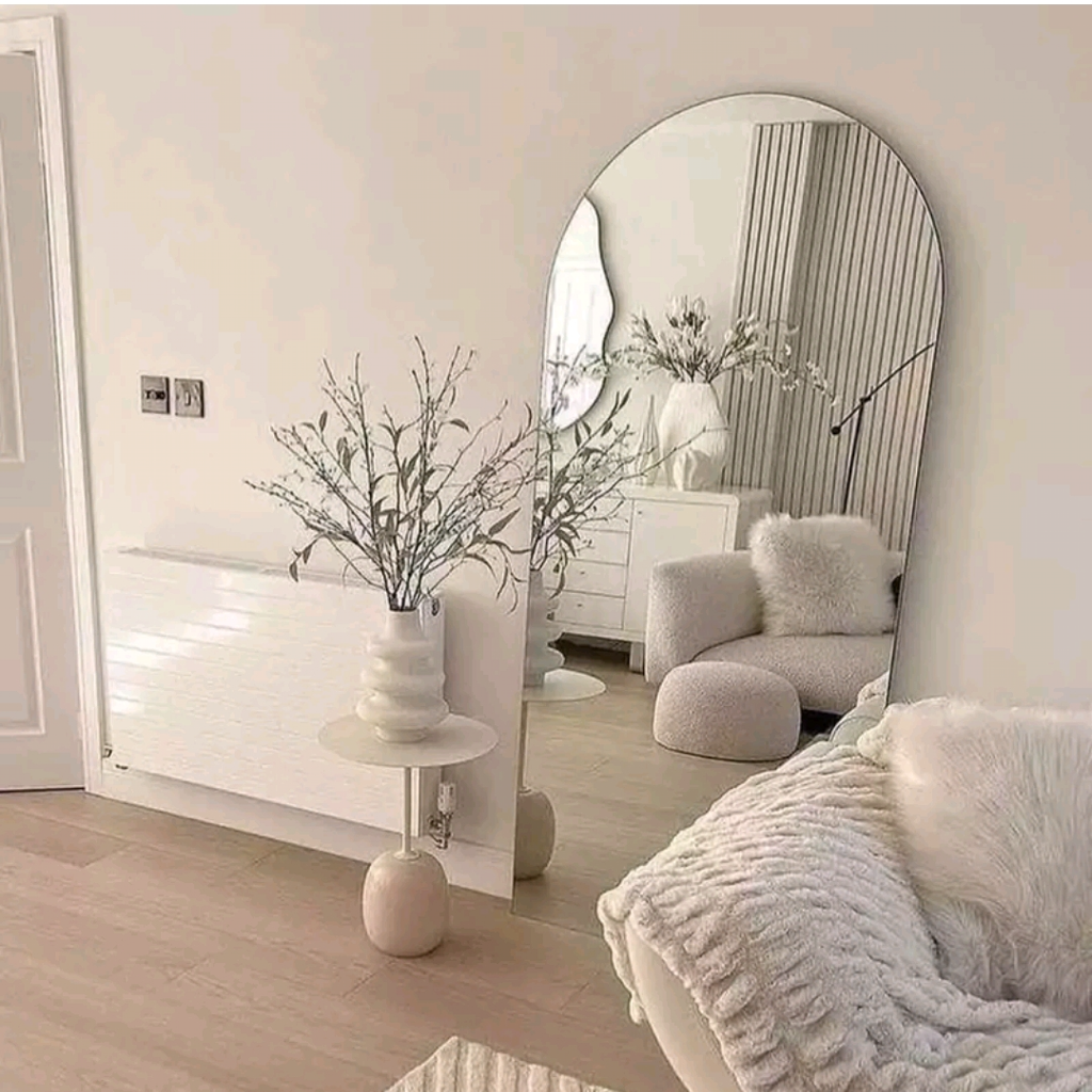 آینه قدی آینیتکت طرح گنبدی یک آینه با کیفیت عالی و دارای سایز 170 سانتی متر ارتفاع و 70 سانتی متر عرض بوده و ضخامت آینه 4 میلیمتر میباشد و با انحنای منحصر به فردی که دارد در عین سادگی شکل زیبایی را به محیط میدهد.همانطور که در تصاویر هم میبینید برای استفاده از آن یا باید به صورت ایستاده به دیوار تکیه بدهید یا از طریق قالبی که در پشت آینه تعبیه شده با یک میخ فولادی بزرگ یا به صورت پیچ (استفاده از رول پلاک ) آویزان کنید. حتما دقت فرمایید که هیچ قابی در این مدل استفاده نشده است . برای لبه های این آینه از دستگاه لول استفاده شده و از تیزی کار گرفته شده تا به راحتی بتوانید آینه را جابجا کنید و آینه را تمیز کنید. این آینه بنا به خواسته شما بصورت حضوری ارسال میشود تا از کیفیت آینه در زمان دریافت اطمینان حاصل شود.
